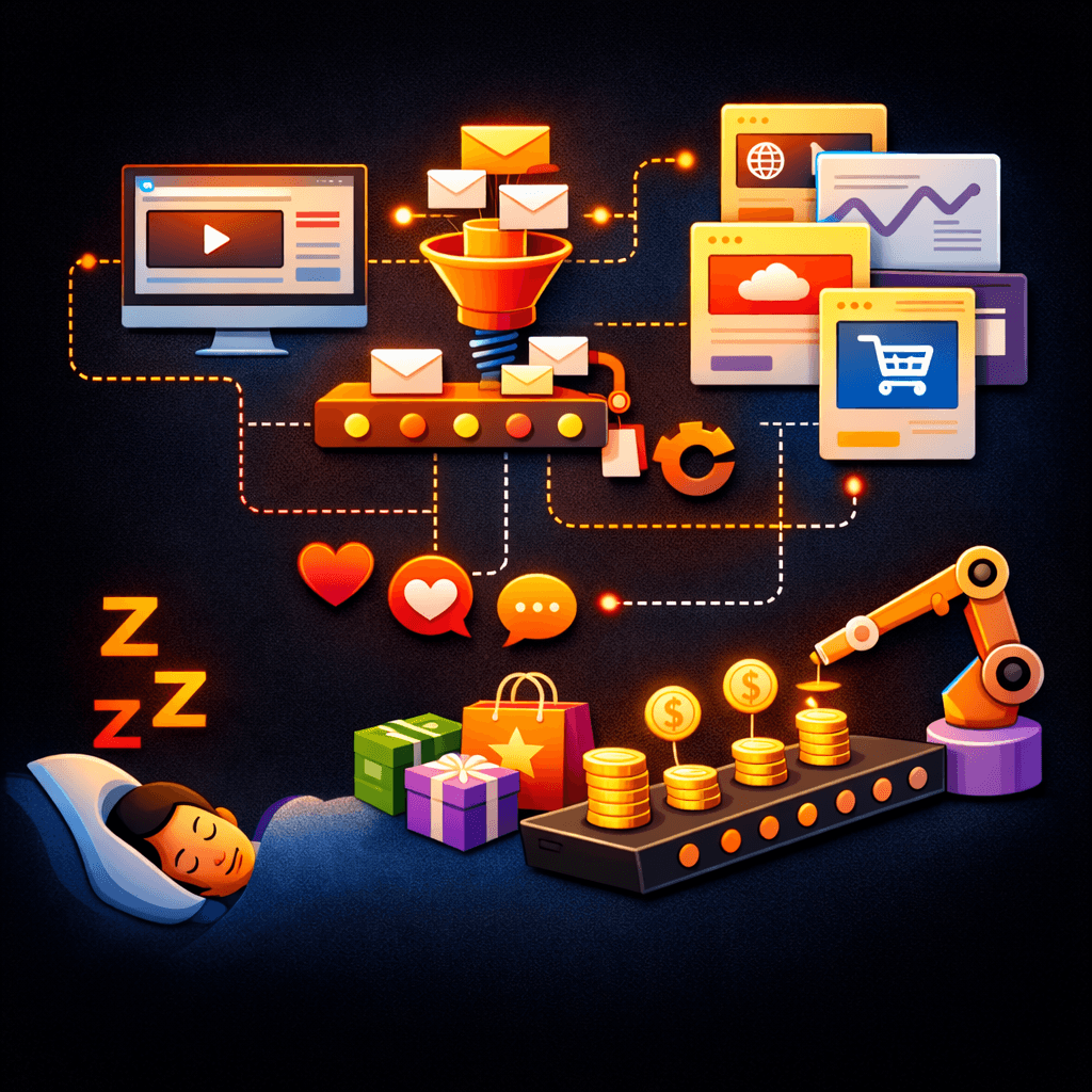 Landing pages. Email sequences. Upsells. Converts while you sleep.